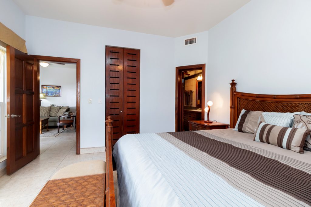 This lovely ground floor two bedroom two bathroom condominium is the perfect vacation home. Tastefully decorated, the living/dining/kitchen area feels open and roomy. The large master bedroom offers a king bed, floor to ceiling windows and an en-suite bathroom equipped with a soaking tub as well as a walk-in shower. The second bedroom offers a queen bed with an en-suite bathroom.