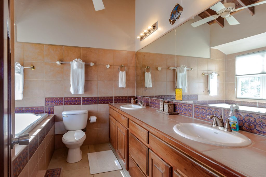 This luxurious, oceanfront condominium has a large living area on the ground floor with fine furnishings, dining table for six, bar seating for six, a half bath, and a full kitchen. The second floor features two oceanfront master suites, each with king size beds and en-suite baths. One master has a large, walk in shower and the other has a separate shower and soaking tub. Enjoy the best view on the island from the huge third floor private sun deck.